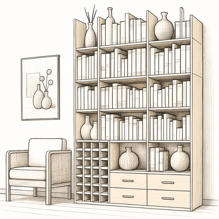 Une bibliothèque à côté ouvert offre une sensation de légèreté visuelle tout en facilitant l’accès et la mise en valeur de vos objets.