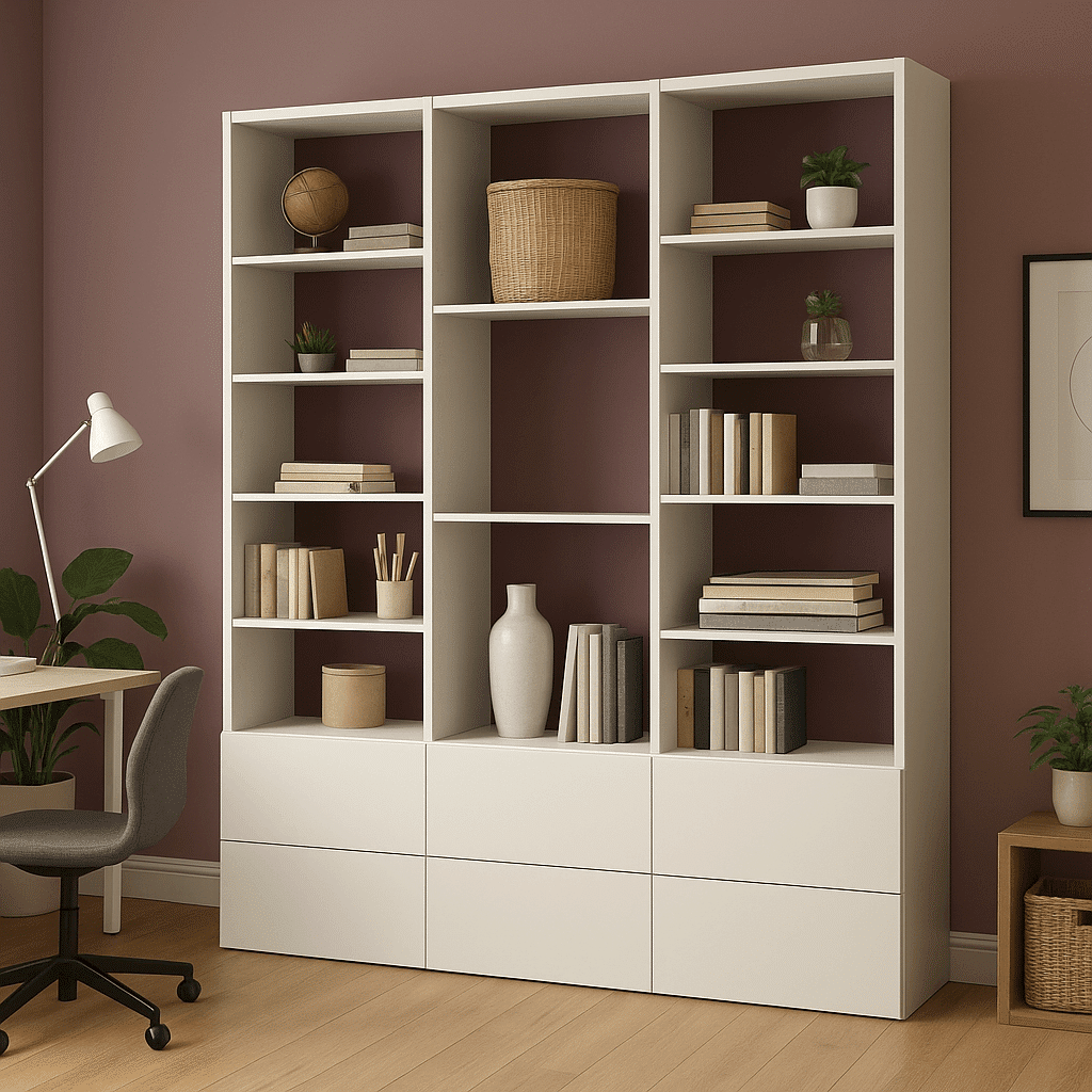 Apportez une touche d’élégance audacieuse à votre intérieur avec cette bibliothèque sur mesure blanche et bordeaux signée Tikimob. Ce meuble allie fonctionnalité et raffinement, avec un jeu de couleurs fort en caractère : le blanc pur pour la luminosité, le bordeaux profond pour la personnalité.