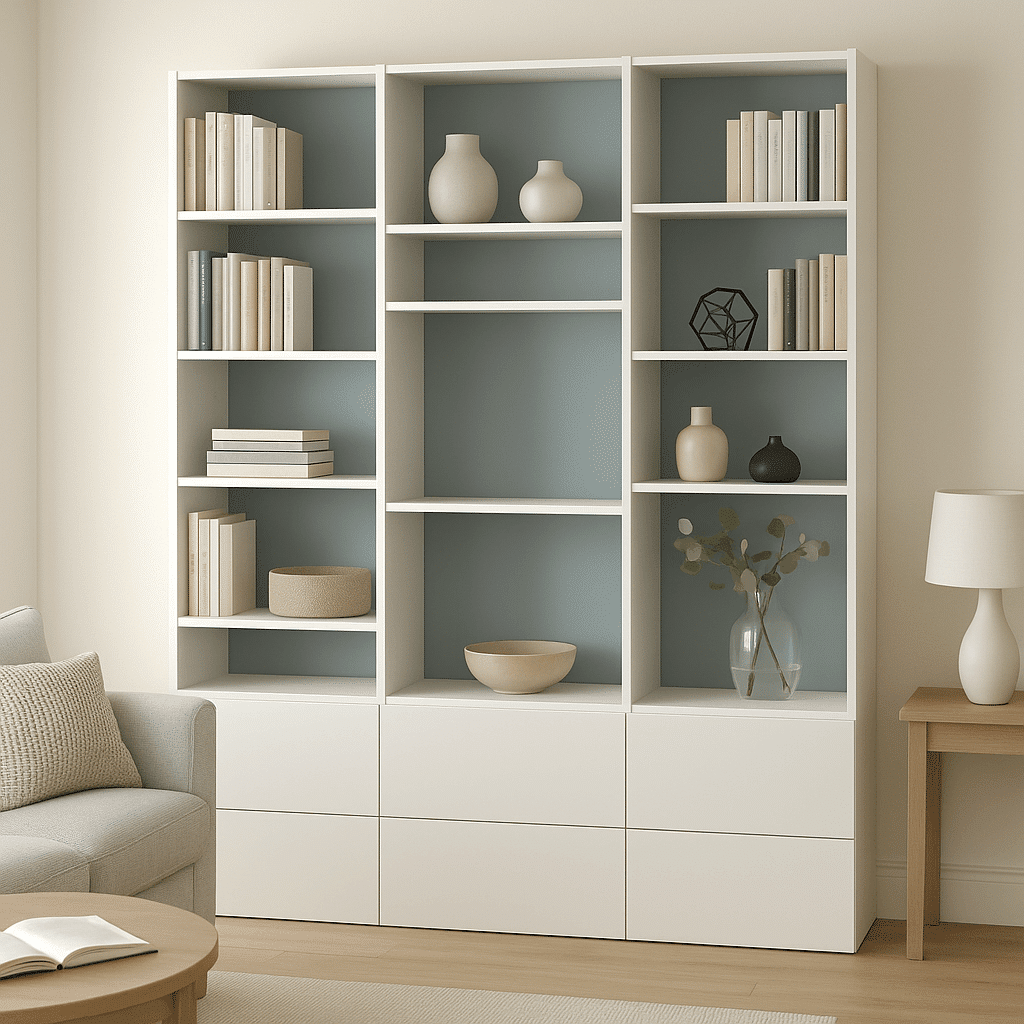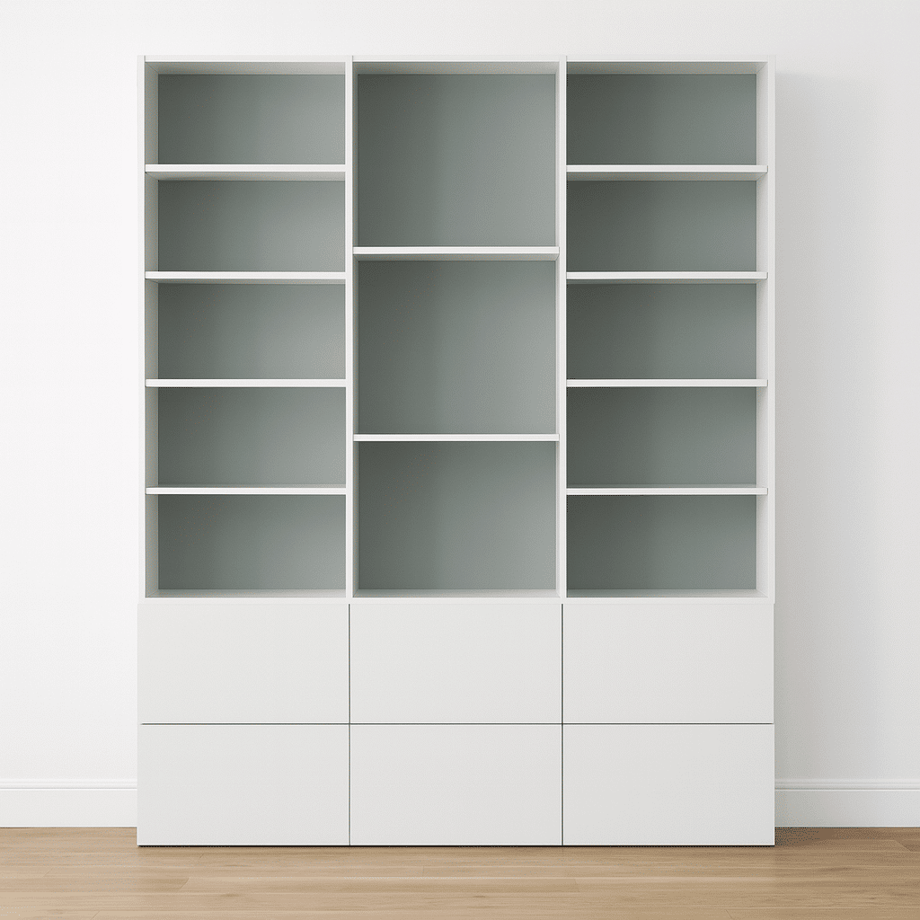 Avec ses trois rangées bien réparties, elle propose un rangement équilibré entre étagères ouvertes pour exposer vos livres, objets ou plantes, et des tiroirs bas intégrés pour ranger à l’abri tout ce que vous souhaitez dissimuler. Son duo de couleurs blanc et gris s’adapte facilement à tous les styles d’intérieur : contemporain, scandinave, industriel ou sobre.