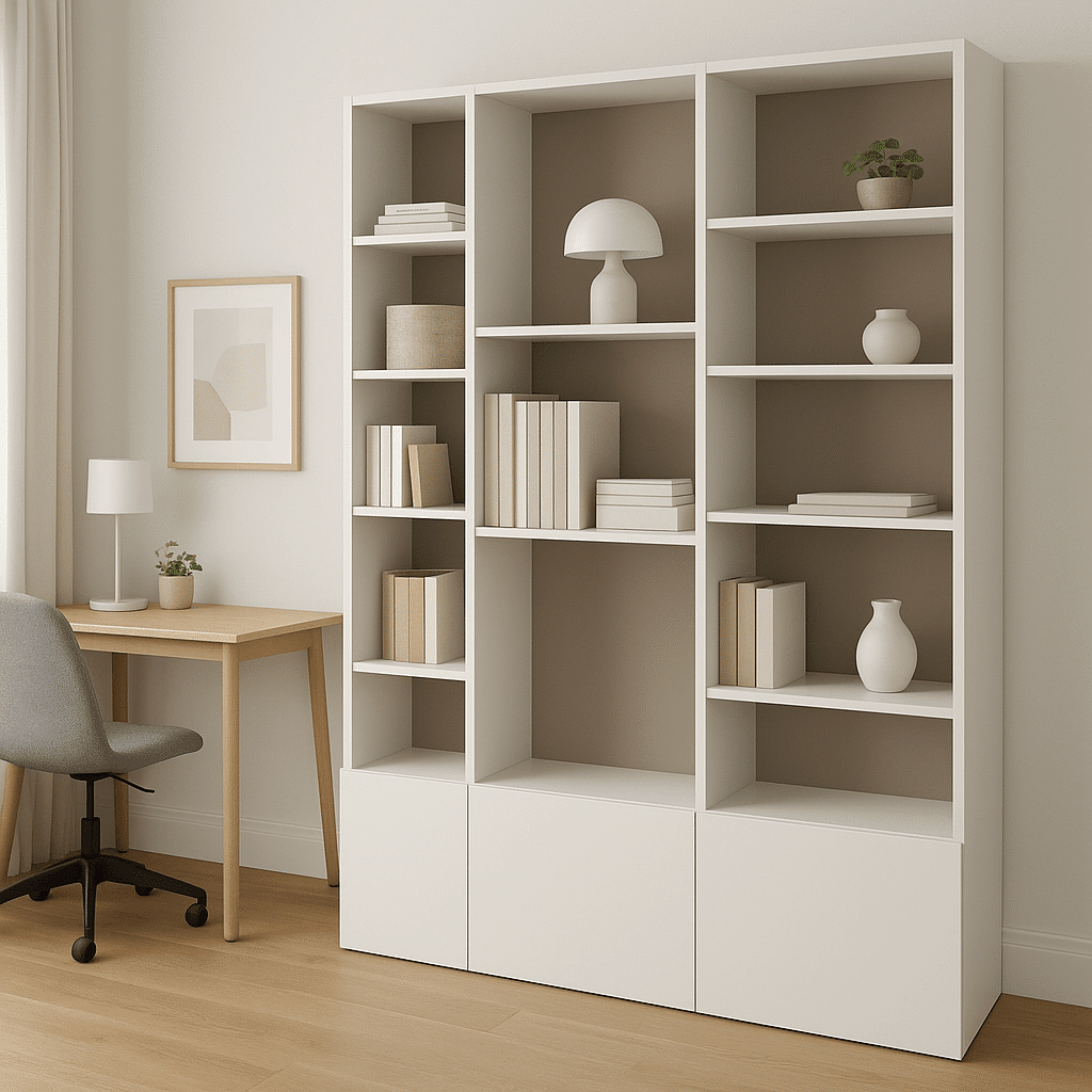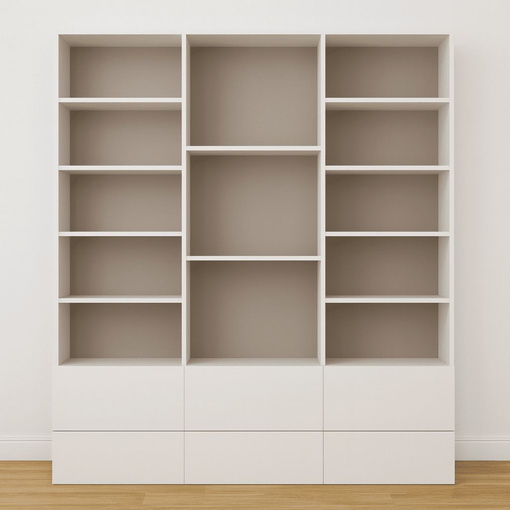 Entièrement personnalisable, ce meuble s’adapte aux dimensions de votre pièce, que ce soit dans un salon, un bureau ou une chambre. Que vous la préfériez en blanc, bois clair, beige ou bicolore, cette bibliothèque s’intègre parfaitement à votre style d’intérieur.