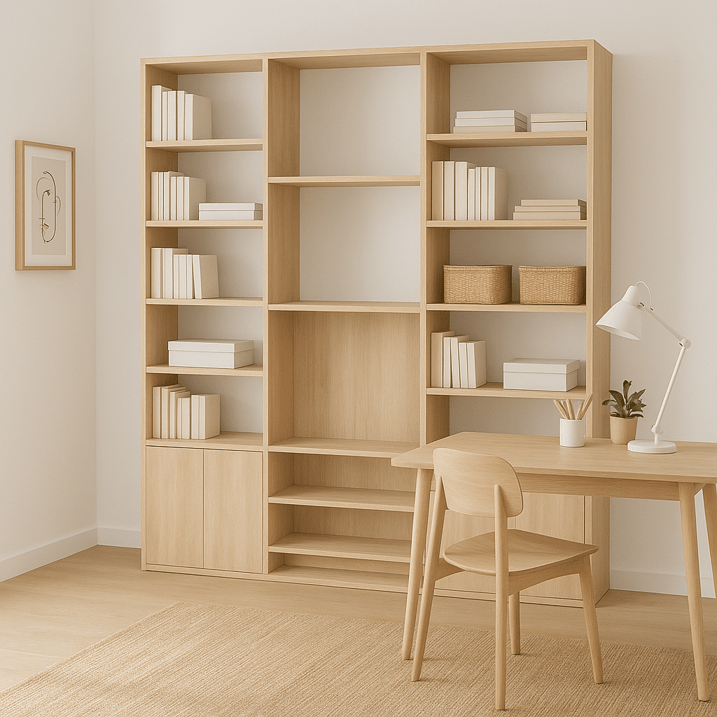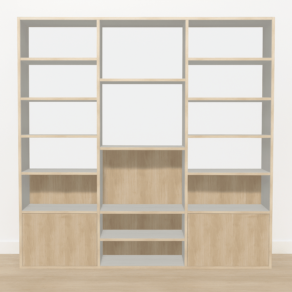 Structure : Étagères ouvertes, niches fermées, tiroirs ou placards bas selon vos besoins