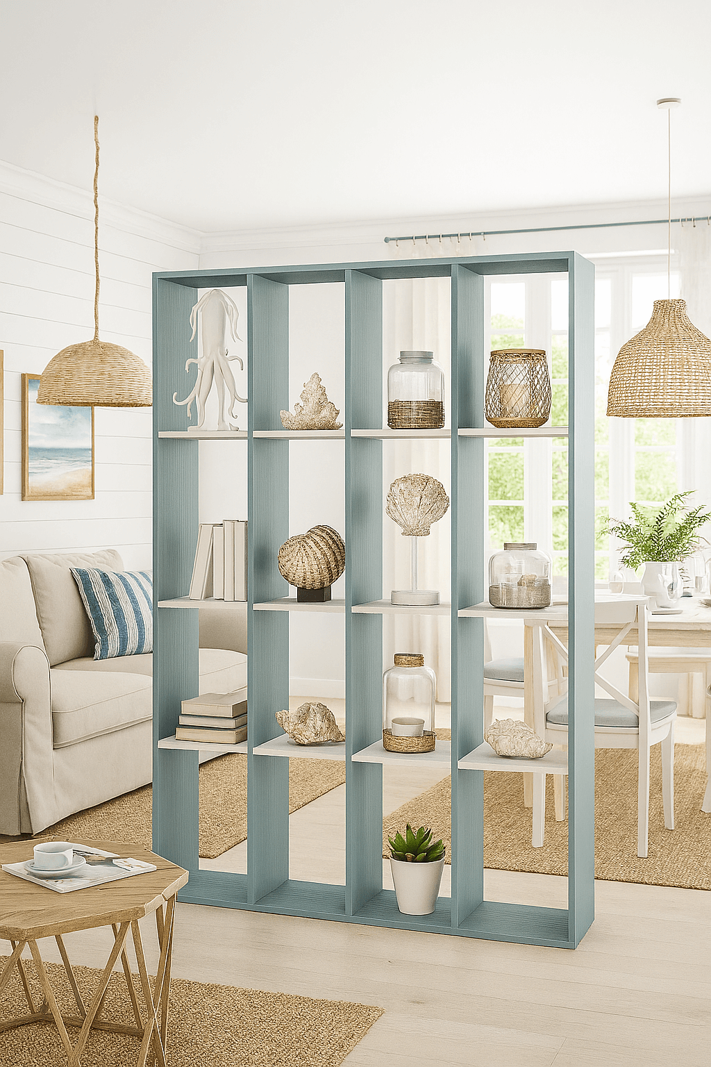 Apportez une touche de fraîcheur et d’organisation à votre intérieur avec cette étagère sur mesure composée de 16 compartiments blanc et bleu signée Tikimob. Conçue pour s’adapter à vos dimensions, elle structure l’espace avec style tout en offrant de multiples rangements. Parfaite dans un salon, une chambre d’enfant ou un bureau, elle allie praticité, personnalisation et design coloré.