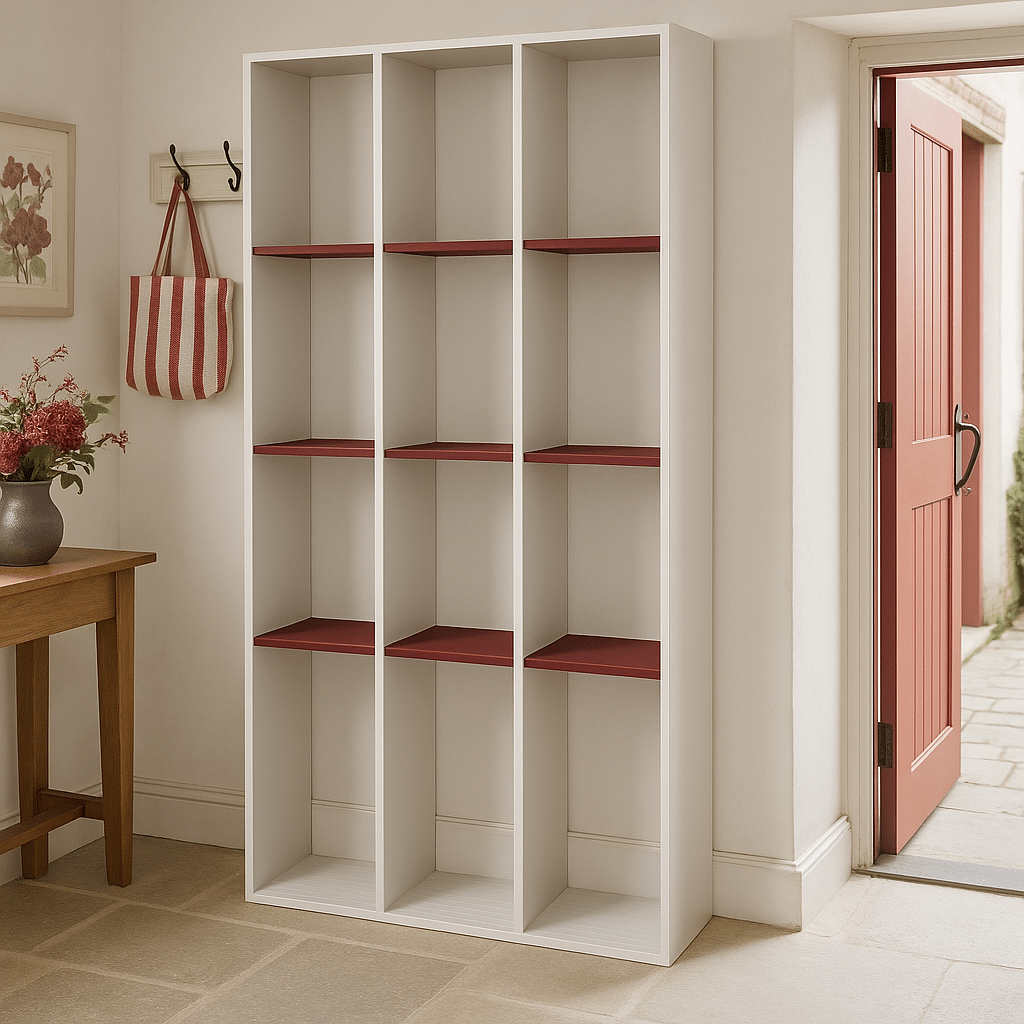 Étagère cube sur mesure 16 rangements, blanc et rouge – Tikimob