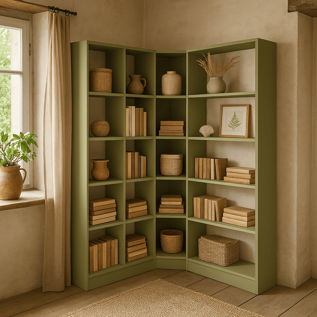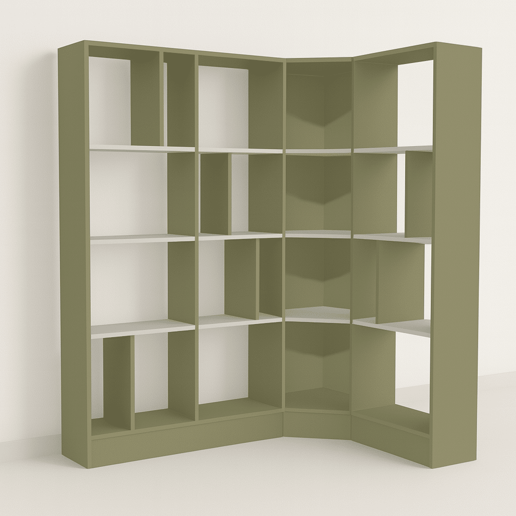 Ajoutez une touche de fraîcheur et de modernité à vos espaces avec ce meuble en angle sur mesure vert et blanc conçu par Tikimob. Que vous optiez pour un vert sauge doux, un vert pastel ou un vert plus audacieux, associé au blanc mat, ce meuble devient un vrai élément déco. Il s’intègre parfaitement dans un coin de salon, de chambre ou de bureau, tout en offrant un rangement structuré et esthétique.