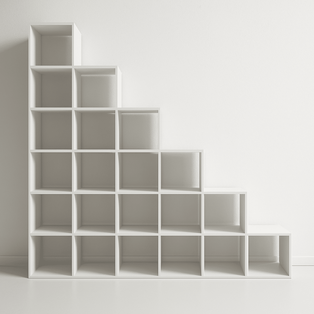 Apportez du rythme et de la modernité à votre intérieur avec ce meuble en forme d’escalier entièrement blanc, pensé pour conjuguer design et praticité. Doté d’étagères ouvertes, il offre un espace de rangement modulable tout en servant d’élément décoratif fort. Idéal contre un mur, en séparation de pièce ou sous escalier, il s’intègre naturellement dans une ambiance contemporaine, minimaliste ou familiale.