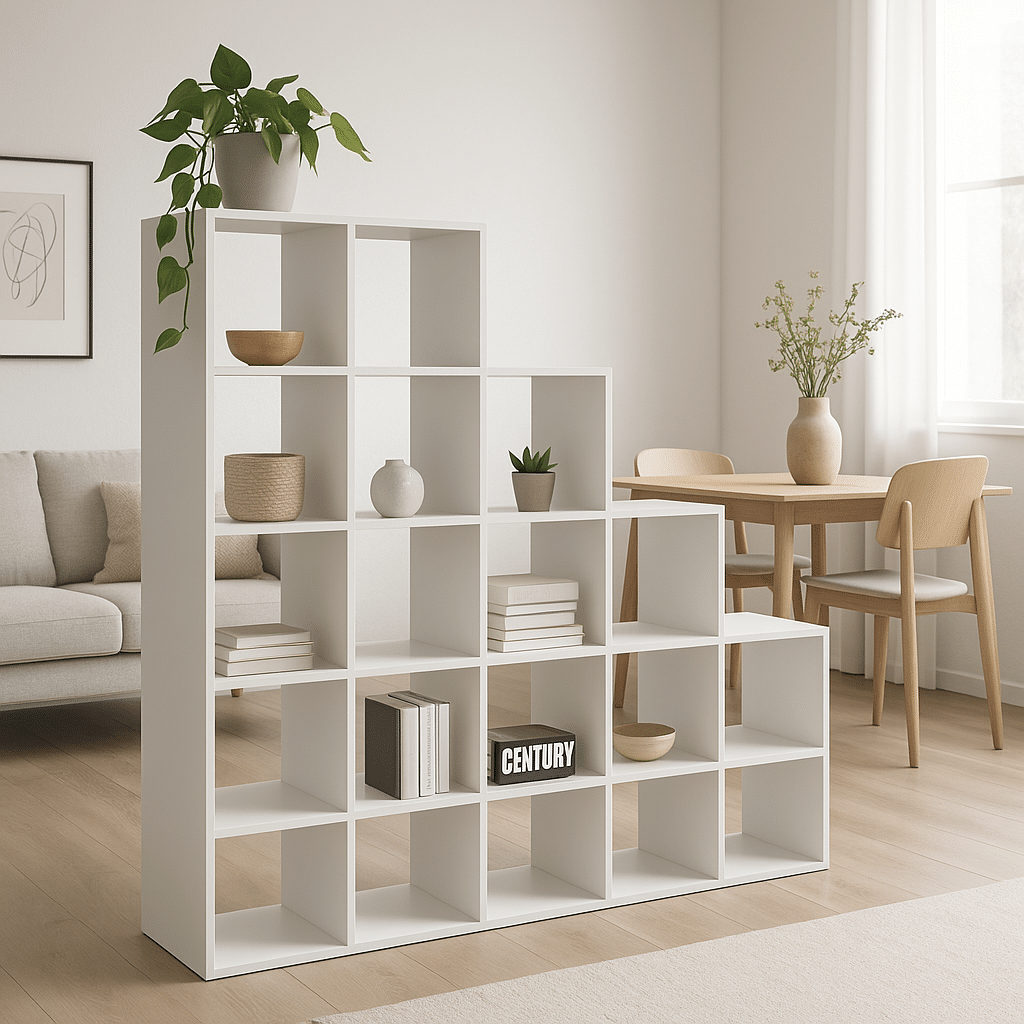 Etagère séparateur de pièce sur mesure blanc, étagères ouvertes – Tikimob