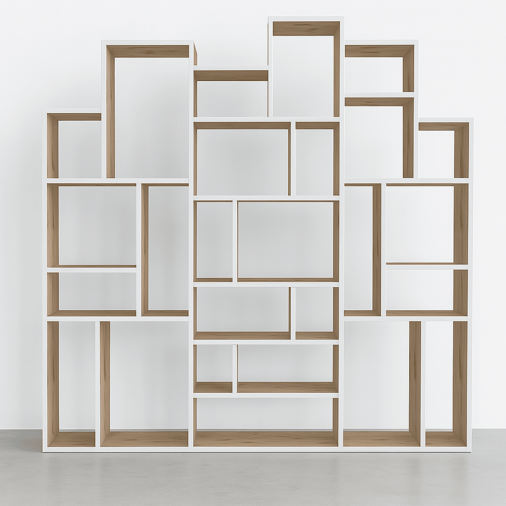 Misez sur un style moderne et structuré avec cette bibliothèque destructurée grise, conçue sur mesure par Tikimob. Sa composition de niches asymétriques crée un rythme visuel original tout en offrant une grande capacité de rangement. La finition grise – qu’elle soit clair, anthracite ou béton – apporte sobriété et élégance, s’adaptant parfaitement aux intérieurs contemporains ou industriels.