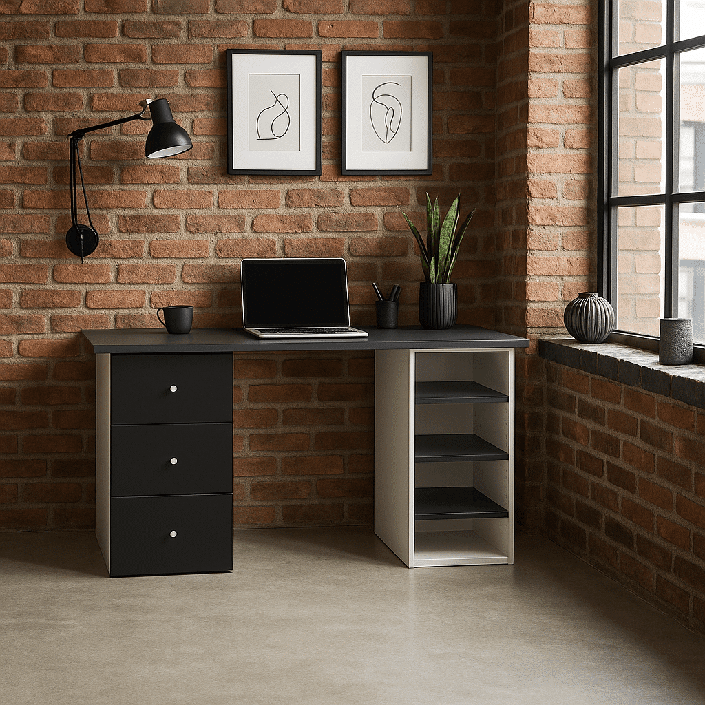 Affirmez votre style avec ce bureau moderne sur mesure, conçu pour allier esthétique minimaliste et fonctionnalité. Équipé d’un caisson de rangement intégré et d’une étagère assortie, ce modèle Tikimob s’adapte à tous les environnements de travail : bureau professionnel, espace créatif ou home office. Ses lignes nettes et sa finition soignée offrent un rendu contemporain et structuré.