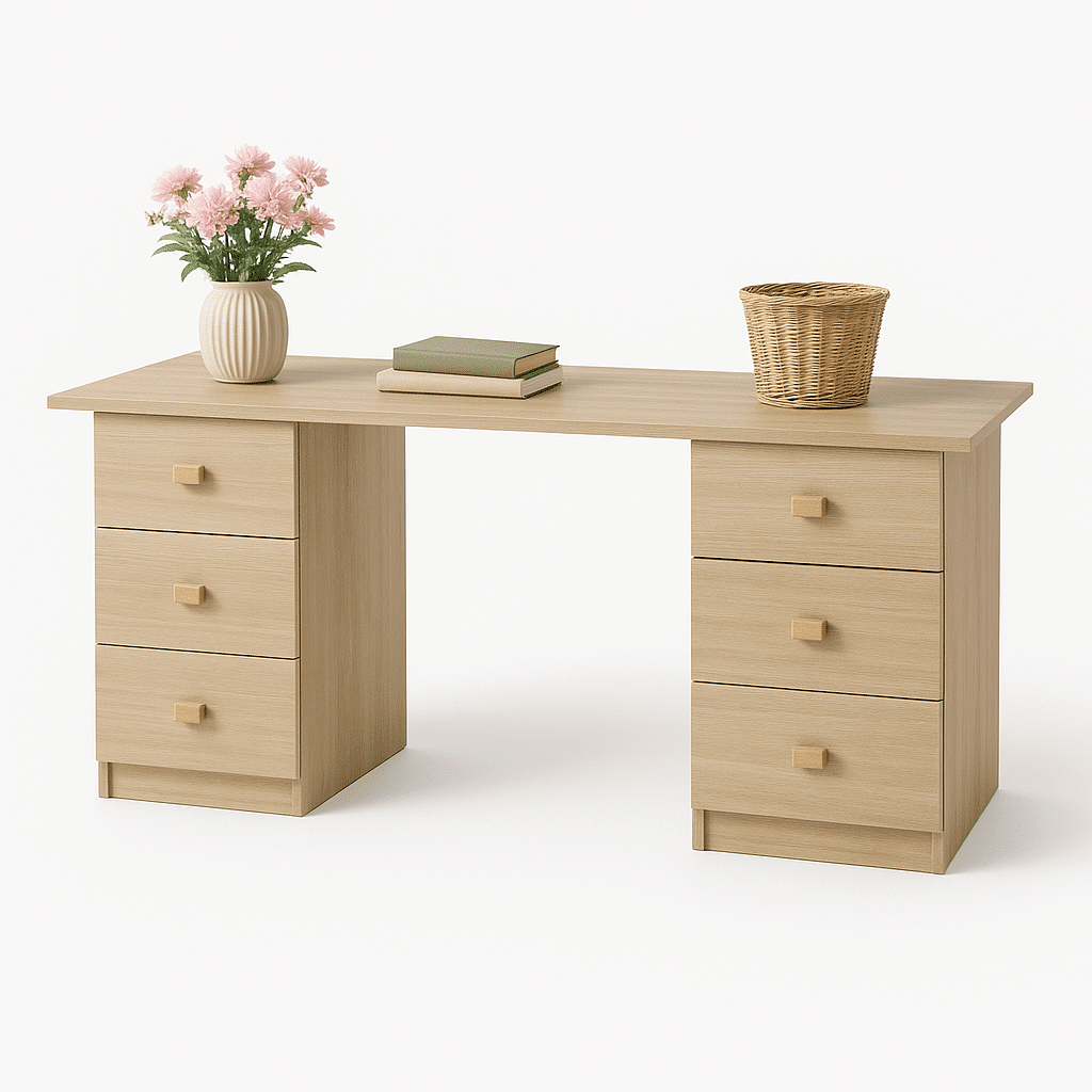 Apportez chaleur et efficacité à votre espace de travail avec ce bureau sur mesure couleur bois avec double caisson signé Tikimob. Sa finition bois clair ou foncé (chêne, hêtre, noyer…) s’harmonise facilement avec tout type d’intérieur, qu’il soit moderne, scandinave ou plus classique. Avec deux caissons intégrés, ce bureau permet de maximiser le rangement tout en conservant un design équilibré et élégant.