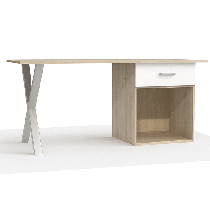 Offrez à votre espace de travail une touche nordique élégante avec ce bureau sur mesure scandinave avec caisson signé Tikimob. Sa combinaison de bois clair et de blanc mat incarne parfaitement le style scandinave : minimaliste, lumineux et chaleureux. Fonctionnel, il intègre un caisson sur mesure pour garder vos documents et accessoires bien rangés tout en conservant un plan de travail dégagé.