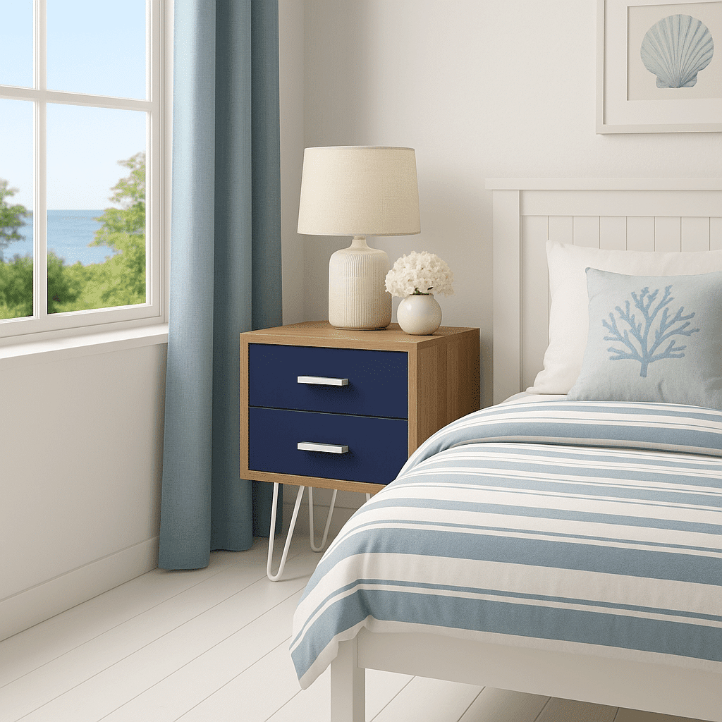 Offrez à votre chambre une touche d’élégance et de profondeur avec ce chevet sur mesure bleu marine, reposant sur des pieds métalliques fins. Signé Tikimob, ce meuble allie raffinement et praticité grâce à sa teinte intense et son format compact. Parfait pour les intérieurs contemporains, ce chevet apporte une présence graphique tout en restant discret et fonctionnel au quotidien.