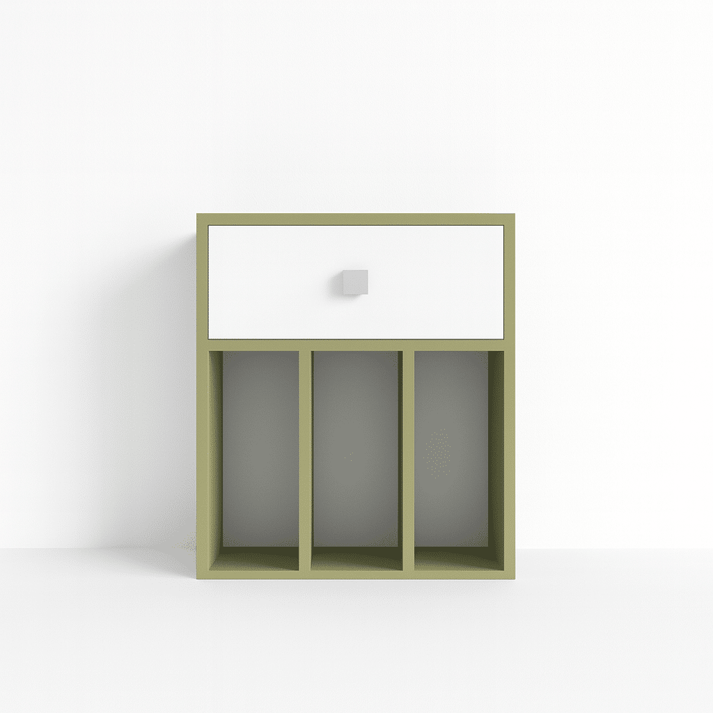 Apportez une touche fraîche et originale à votre chambre avec cette table de chevet sur mesure en vert et blanc, imaginée par Tikimob. Avec ses étagères verticales ouvertes, elle offre un espace de rangement fonctionnel tout en ajoutant une note de couleur douce ou vive selon le vert choisi (sauge, olive, pistache, forêt…). Parfaite pour les chambres modernes, naturelles ou scandinaves, elle allie praticité, compacité et esthétisme.