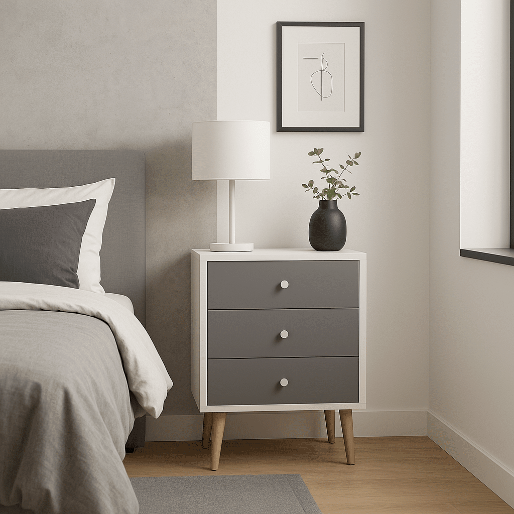 Optez pour un chevet élégant et fonctionnel avec cette table de chevet sur mesure gris signée Tikimob, montée sur de pieds en bois naturel. Elle incarne parfaitement l’esprit scandinave : des lignes sobres, une finition douce et un contraste chaleureux entre le gris du caisson et la teinte claire du bois. Que ce soit pour une chambre adulte, ado ou un studio, elle combine design moderne et praticité dans un format compact.