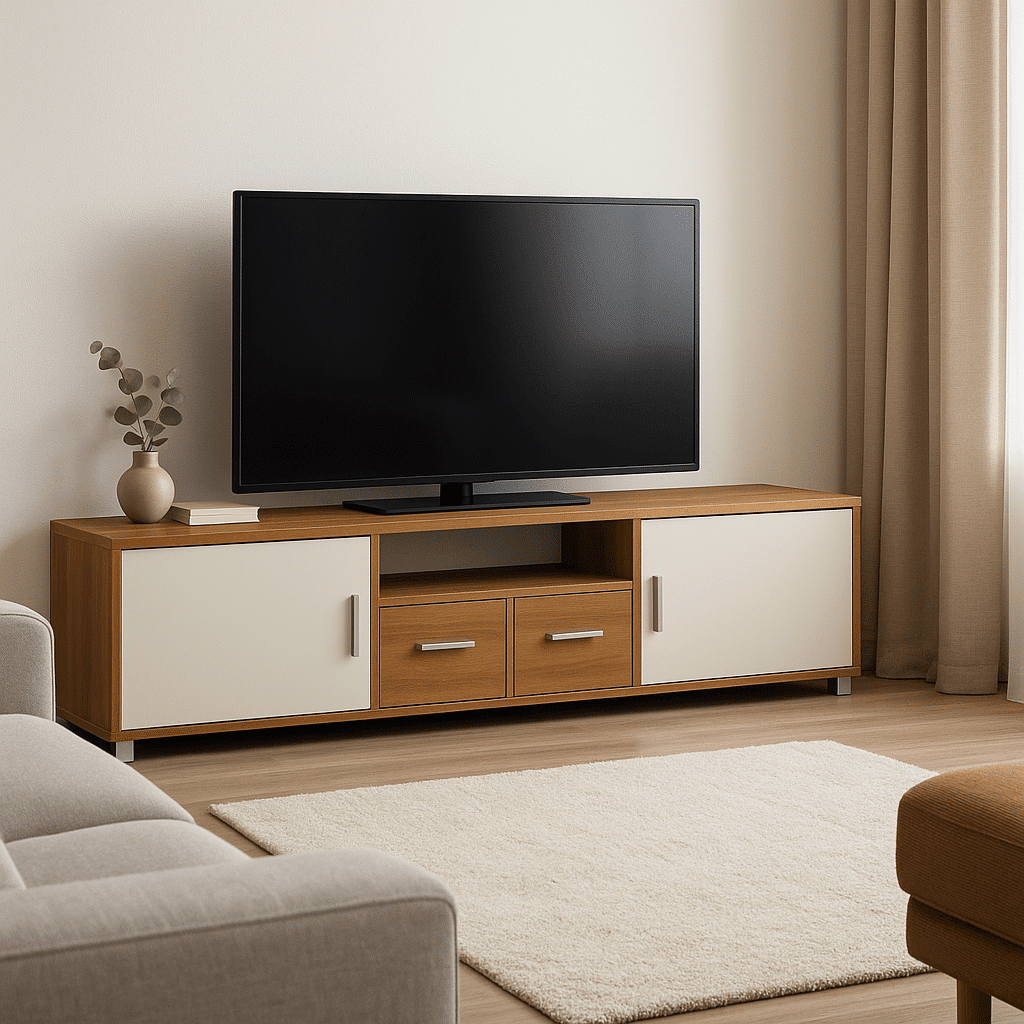 Apportez chaleur et élégance nordique à votre salon avec ce meuble TV sur mesure style scandinave, conçu par Tikimob. Inspiré du design nordique, il combine bois clair naturel et blanc mat dans une composition simple et lumineuse. Entièrement personnalisable, ce meuble s’adapte aux dimensions de votre pièce et à vos besoins de rangement, pour un espace organisé, accueillant et intemporel.