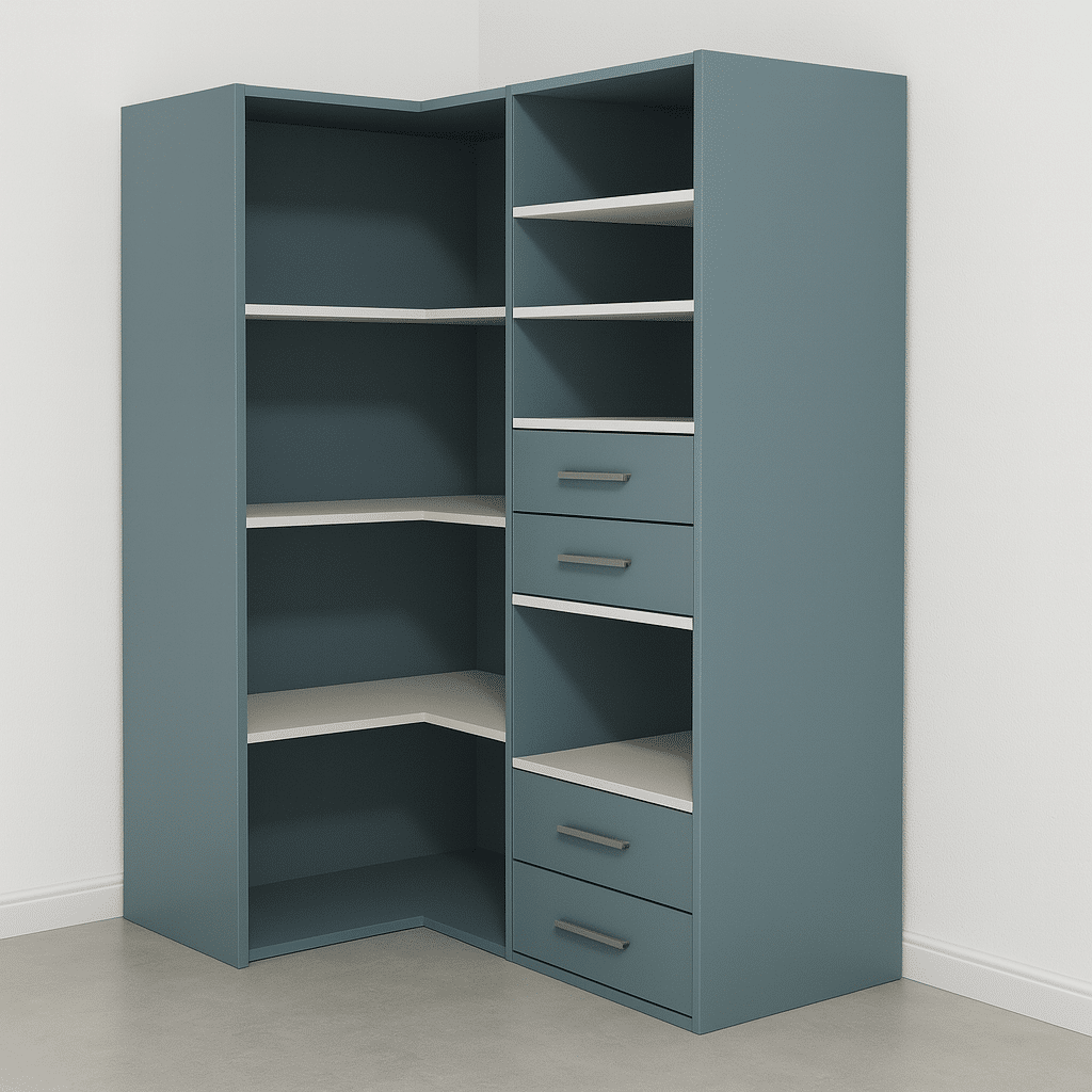Meuble angle sur mesure avec penderie – Bleu