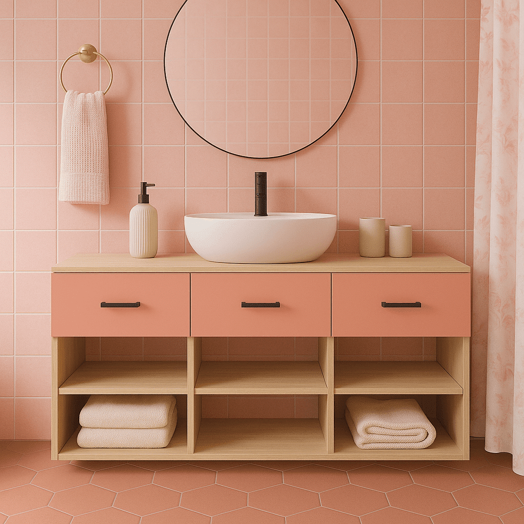 Exprimez votre style avec audace grâce à ce meuble de salle de bains rose sur mesure, conçu par Tikimob pour allier originalité, élégance et fonctionnalité. Parfait pour une ambiance douce, design ou artistique, ce meuble s’adapte à tous les styles : scandinave, moderne, pop ou romantique. Disponible en rose pastel, poudré, framboise ou vieux rose, il est intégralement personnalisable pour s’intégrer harmonieusement à votre salle de bains.