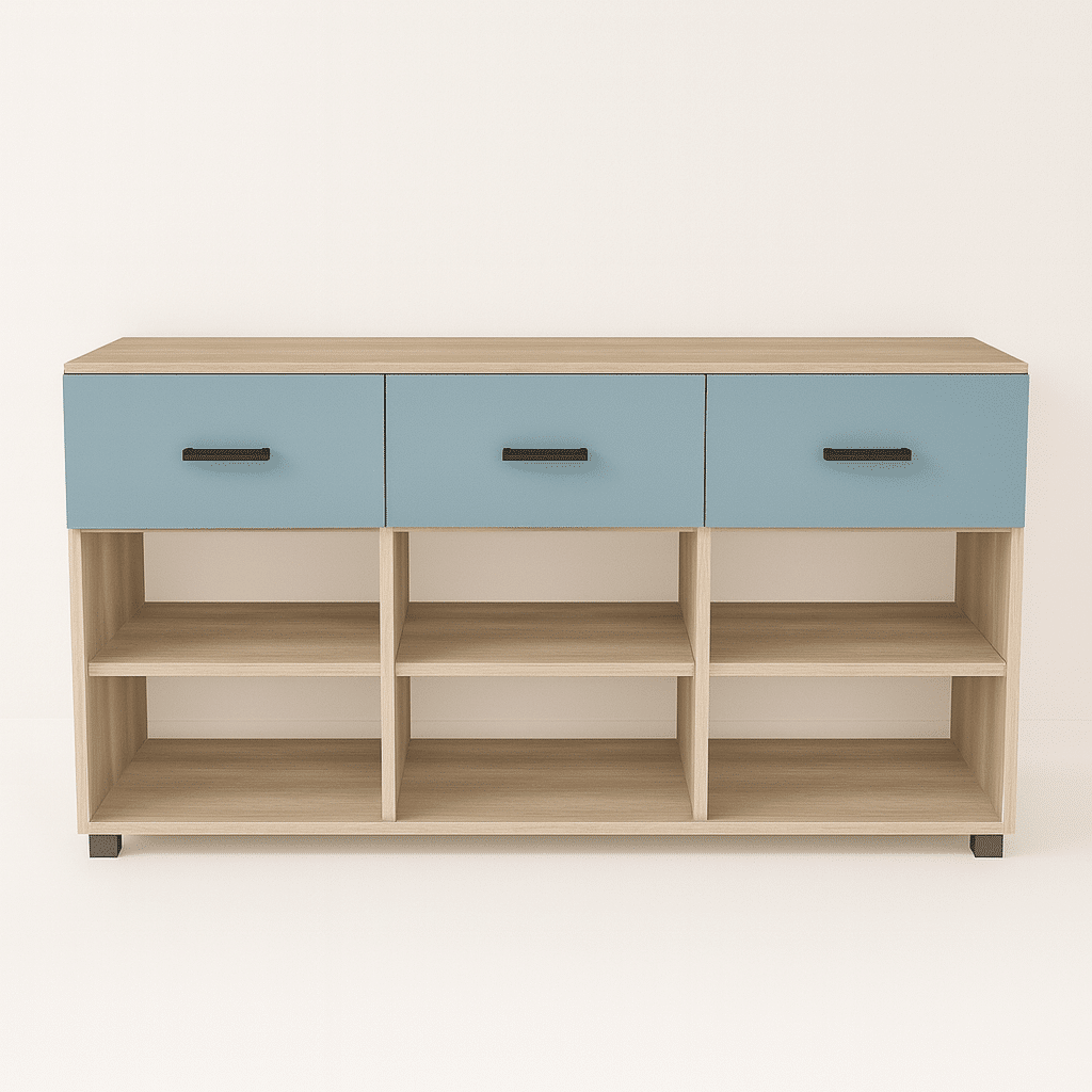 Structure : Niches ouvertes, tiroirs, portes battantes