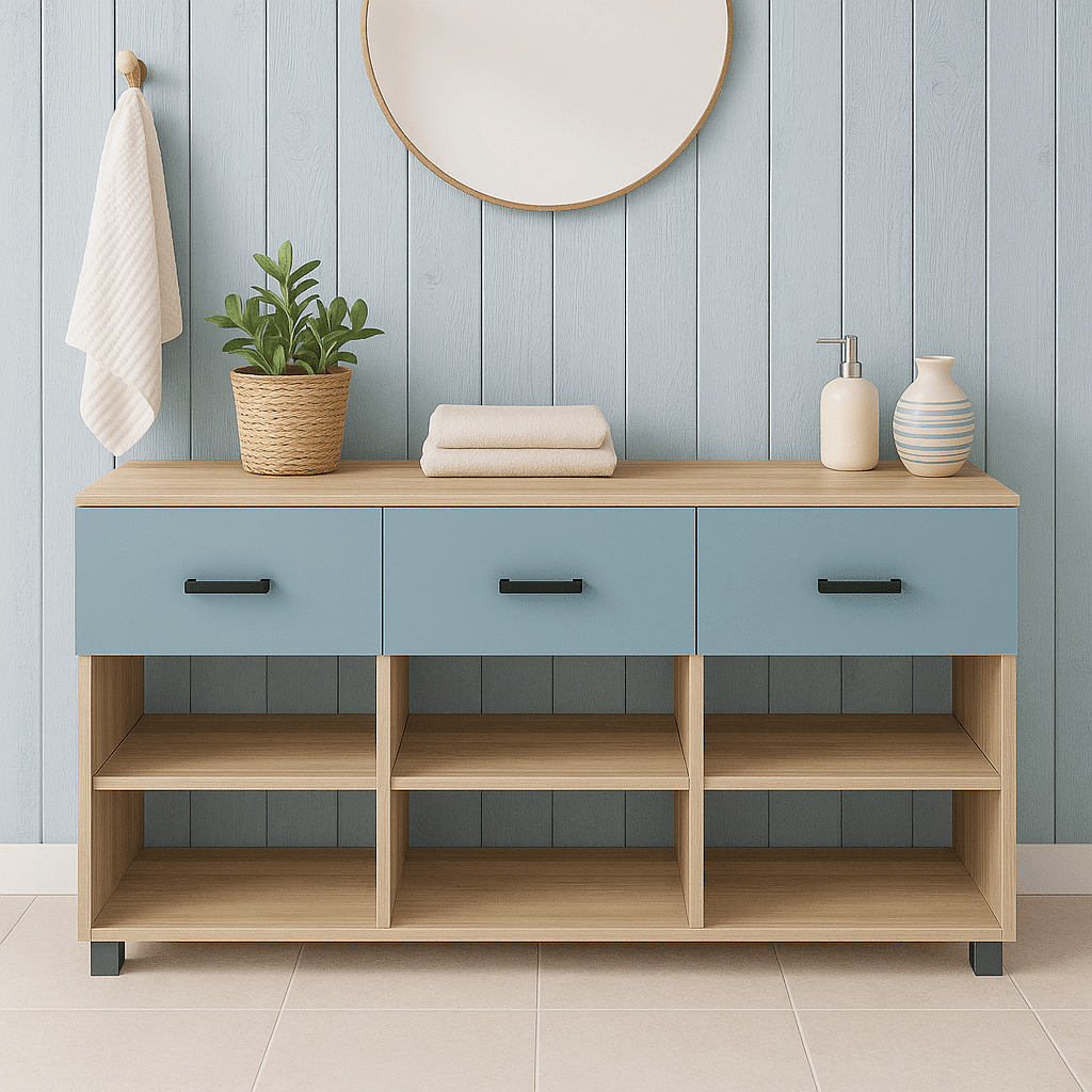 Apportez une touche de fraîcheur et de légèreté à votre salle de bains avec ce meuble de salle de bains bleu ciel sur mesure, signé Tikimob. Idéal pour un intérieur scandinave, contemporain ou bord de mer, ce meuble combine design épuré, teinte apaisante et fonctionnalité. Fabriqué 100 % sur mesure, il s’adapte à toutes les configurations et vous permet de composer un espace à la fois pratique, esthétique et lumineux.