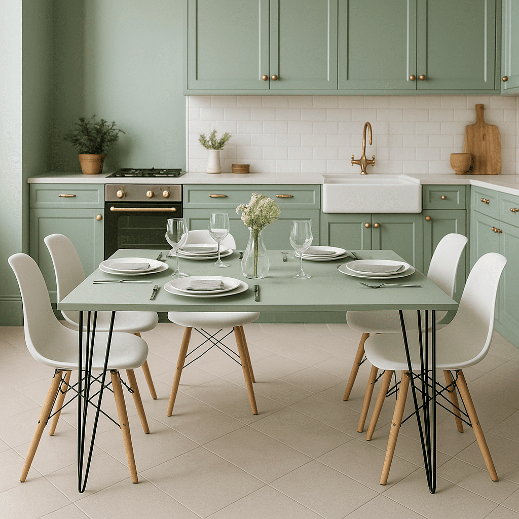Invitez la fraîcheur et la sérénité dans votre salle à manger avec cette table sur mesure vert clair, imaginée par Tikimob. Sa teinte douce (vert sauge, pastel ou vert d’eau) apporte une ambiance lumineuse et apaisante, idéale pour créer un espace repas accueillant. Entièrement personnalisable, cette table s’adapte à vos dimensions et à votre style pour devenir la pièce maîtresse de votre intérieur.